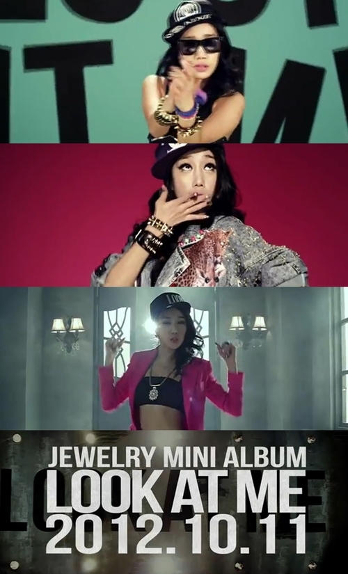 쥬얼리는 9일 정오를 기해 새 앨범 타이틀곡 ‘룩앳미(Look at Me)’의 뮤직비디오 티저 영상을 공개했다.공개된 티저 영상에는 쥬얼리의 멤버 하주연이 단독으로 등장, 화려한 래핑을 선보이며 컴백에 대한 기대감을 높였다. ‘룩앳미’ 도입부를 담은 이 티저영상은 박진감 넘치는 비트로 채워지며 흥겨운 분위기가 연출됐다.