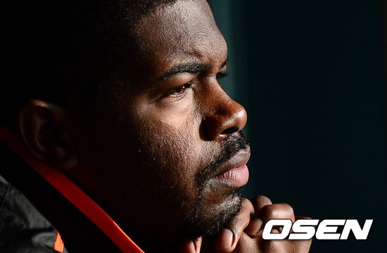 9일 오후 서울 잠실구장에서 열린 2012 팔도 프로야구 준플레이오프 2차전 두산 베어스와 롯데 자이언츠의 경기, 경기에 앞서 롯데 유먼이 더그아웃에 앉아 생각에 잠겨 있다.