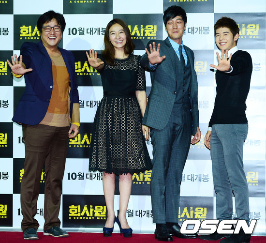 9일 오후 동대문 메가박스에서 열린 영화 '회사원' 언론 배급 시사회에서 곽도원 이미연 소지섭 김동준이 포토타임을 갖고 있다.