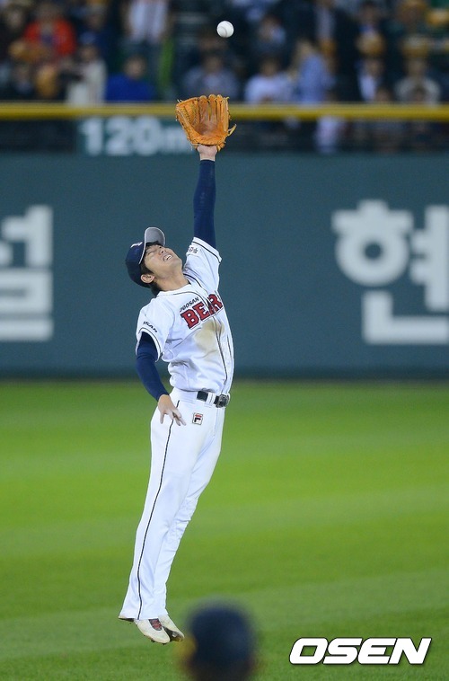 7회초 1사 1,2루 문규현의 유격수 키를 넘기는 안타때 두산 김재호 유격수가 점프를 하였으나 안타를 허용하고 있다.
