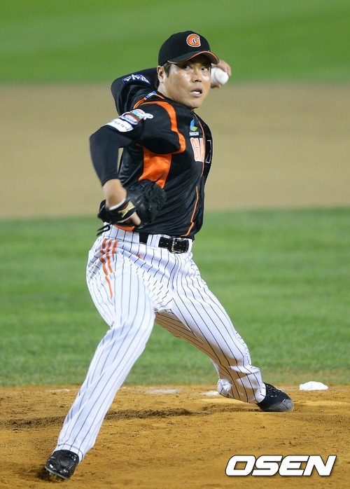 8회말 2사 1루 강영식 투수가 팀 네번째 투수로 등판 공을 던지고 있다.