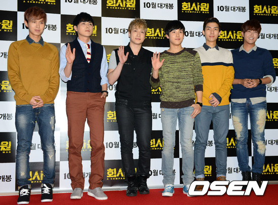 9일 오후 서울 코엑스 메가박스에서 영화 '회사원' VIP 시사회가 열릴 예정인가운데 제국의아이들이 포토월에서 포즈를 취하고 있다.