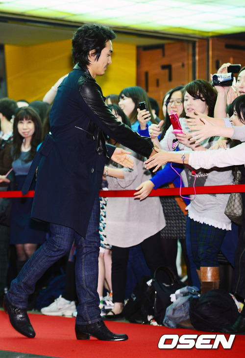 9일 오후 서울 코엑스 메가박스에서 영화 '회사원' VIP 시사회가 열릴 예정인가운데 송승헌이 팬들과 악수를 나누고 있다.