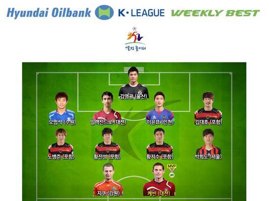 골키퍼에는 되살아 난 제주의 화력을 육탄 방어로 저지하며 팀의 무실점을 이끈 김영광(울산)이 뽑혔다.