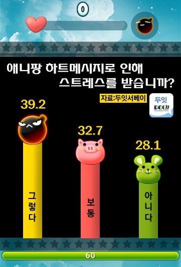 애니팡 개발업체 선데이토즈에 따르면 애니팡을 설치한 가입자 수는 1700만명에 달하고 동시 접속자수도 200만명을 넘는다. 이런 가운데 카카오톡을 통한 하트전송으로 인하여 사용자에게는 스트레스로 작용할 수 있다는 결과가 나왔다.