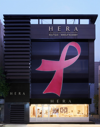 ‘헤라, 핑크 리본을 달다’는 여자가 건강하고 아름답게 살 수 있게 하자는 취지를 갖고 진행한 헤라의 캠페인이다. 헤라는 올해도 변함없이 유방암 환우들을 위한 핑크 리본 캠페인을 후원하며, 여자들의 유방암 의식 향상과 퇴치에 대한 희망으로 헤라 부티크 전면에 대형 핑크 리본을 달아 이를 기념했다.
