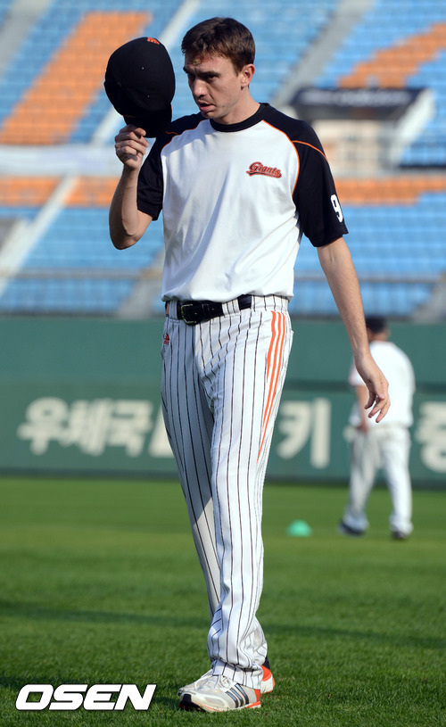 2012 팔도 프로야구 준플레이오프 3차전을 하루 앞둔 10일 오후 부산 사직구장에서 훈련을 끝낸 사도스키가 덕아웃으로 들어가고 있다.