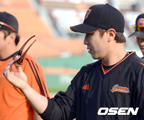 2012 팔도 프로야구 준플레이오프 3차전을 하루 앞둔 10일 오후 부산 사직구장에서 롯데 박준서가 선글라스를 벗으며 더그아웃으로 들어오고 있다.