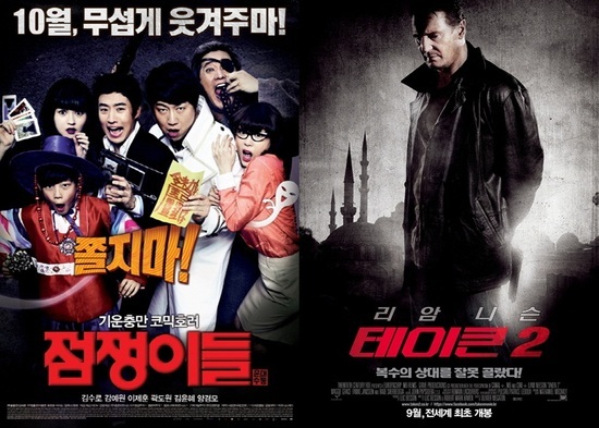 영화 '점쟁이들'과 '테이큰2'가 박스오피스 순위를 엎치락 뒤치락 오르내리며 박빙의 대결을 펼치고 있다.