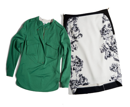잇미샤의 ‘모던 페미닌 오피스 룩(MODERN FEMININE OFFICE LOOK)’은 가을 향기가 물씬 나는 딥그린 컬러의 차이나 칼라 블라우스에 한 폭의 수묵화를 연상시키는 플라워 패턴이 옆 라인을 감싸듯이 그려진 화이트 스커트의 매치로 성숙한 여성미를 보여준다. 동시에 모노톤으로 일색인 오피스 룩에 컬러와 프린트로 스타일링 포인트를 더했다.