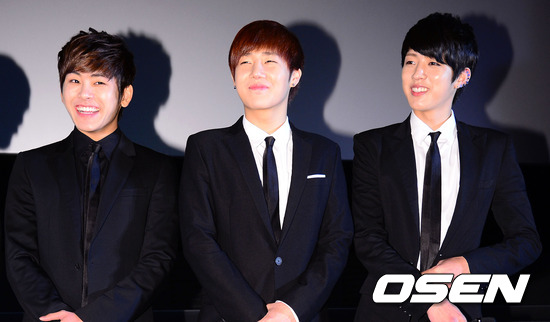 11일 오후 서울 CGV왕십리에서 진행된 '인피니트 콘서트 세컨드 인베이전 에볼루션 더 무비 3D' 언론 시사회에서 인피니트 호야, 성규, 성열이 포토타임을 갖고 있다.