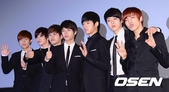 11일 오후 서울 CGV왕십리에서 진행된 '인피니트 콘서트 세컨드 인베이전 에볼루션 더 무비 3D' 언론 시사회에서 인피니트가 포토타임을 갖고 있다.