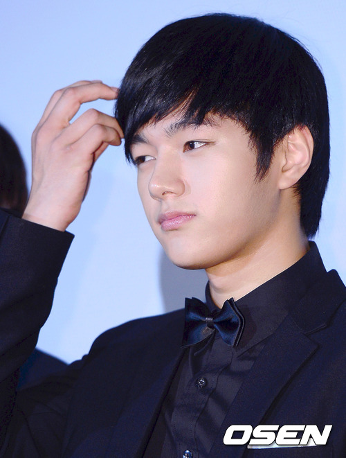 11일 오후 서울 CGV왕십리에서 진행된 '인피니트 콘서트 세컨드 인베이전 에볼루션 더 무비 3D' 언론 시사회에서 인피니트 엘이 헤어스타일을 정리하고 있다.
