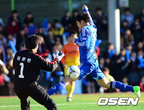 [OSEN = 백승철 기자] 11일 오후 서울 노원구 삼육대학교에서 열린 연예인 축구단 FC MEN과 삼육대학교 학생들의 자선경기에서 임슬옹이 슈팅을 실패하고 있다.