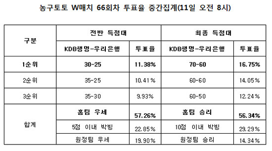 2012-2013시즌 농구토토 W매치 66회차 투표율 중간집계 결과