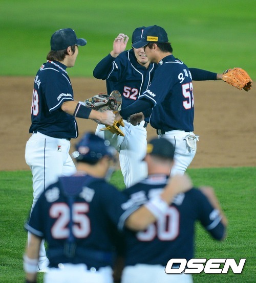 경기 종료후 두산 선수들이 승리의 기쁨을 나누고 있다. / ajyoung@osen.co.kr