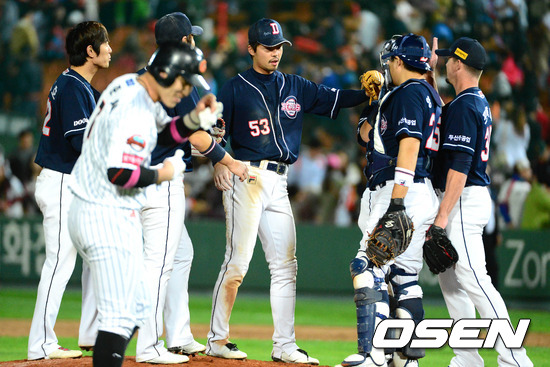 경기 종료 후 두산 선수들이 승리의 기쁨을 나누고 있다. / sunday@osen.co.kr
