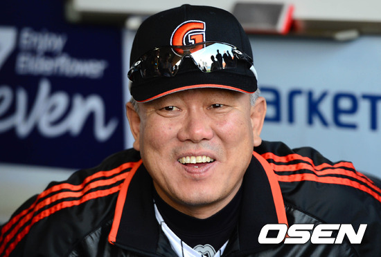 12일 오후 부산 사직구장에서 열린 2012 팔도 프로야구 준플레이오프 4차전 두산 베어스와 롯데 자이언츠의 경기, 경기에 앞서 롯데 양승호 감독이 취재진과 이야기를 나누고 있다.