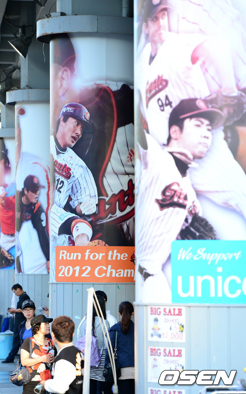 12일 오후 부산 사직구장에서 열린 2012 팔도 프로야구 준플레이오프 4차전 두산 베어스와 롯데 자이언츠의 경기, 경기에 앞서 관중이 경기장으로 입장하고 있다.