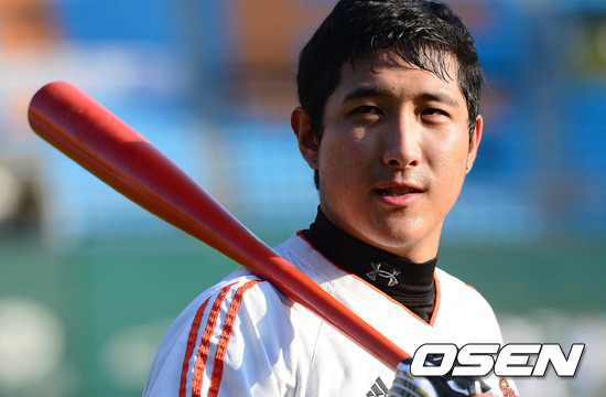 12일 오후 부산 사직구장에서 열린 2012 팔도 프로야구 준플레이오프 4차전 두산 베어스와 롯데 자이언츠의 경기, 경기에 앞서 롯데 황재균이 훈련을 마치고 더그아웃으로 가고 있다.