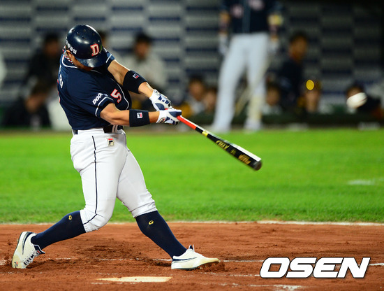 12일 오후 부산 사직구장에서 열린 2012 팔도 프로야구 준플레이오프 4차전 두산 베어스와 롯데 자이언츠의 경기, 2회초 무사에서 두산 윤석민이 선제 솔로포를 날리고 있다.