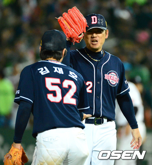 그러나 김선우는 용덕한의 정면 땅볼 타구를 그대로 잡아낸 뒤 1루로 송구해 잔루 만루 무득점으로 4회 위기도 막아냈다. 5회까지 무실점을 이어간 김선우는 선발승 요건을 채우며 자기 몫을 확실히 해냈다. 다만 2점 차 리드에 불과했던 데다 패하면 끝장이라 1선발 더스틴 니퍼트까지 불펜 대기시킨 상황인 만큼 김선우는 5이닝 74구로 임무를 마쳤다.