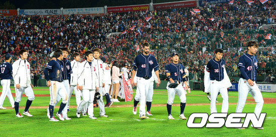 경기 종료 후 플레이오프 진출에 실패한 두산 선수들이 아쉬운 표정으로 더그아웃으로 가고 있다. /sunday@osen.co.kr
