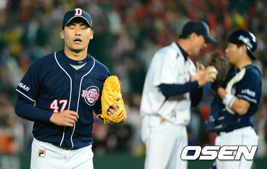 10회말 두산 홍상삼이 마운드르를 내려가고 있다. /sunday@osen.co.kr