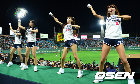 두산 치어리더가 화려한 공연을 펼치고 있다. /sunday@osen.co.kr