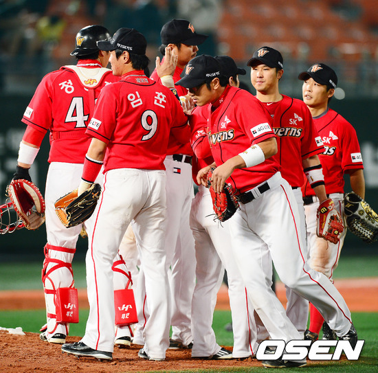 SK는 13일 문학구장에서 열린 경찰청과의 연습경기에서 주축 선수들을 골고루 쓰며 9-2로 이겼다. 휴식 기간 동안 자체 청백전 한 경기를 진행했던 SK는 마지막 리허설인 경찰청과의 경기를 비교적 성공적으로 마무리하며 16일 시작되는 플레이오프 1차전에 대비했다.