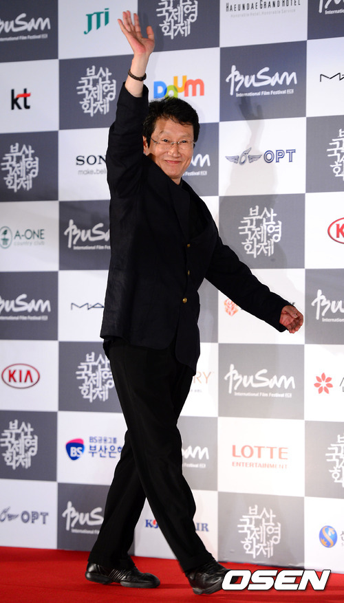 13일 오후 부산 해운대 영화의 전당에서 열린 제17회 부산국제영화제 폐막식에서 배우 문성근이 레드카펫 행사를 갖고 있다.