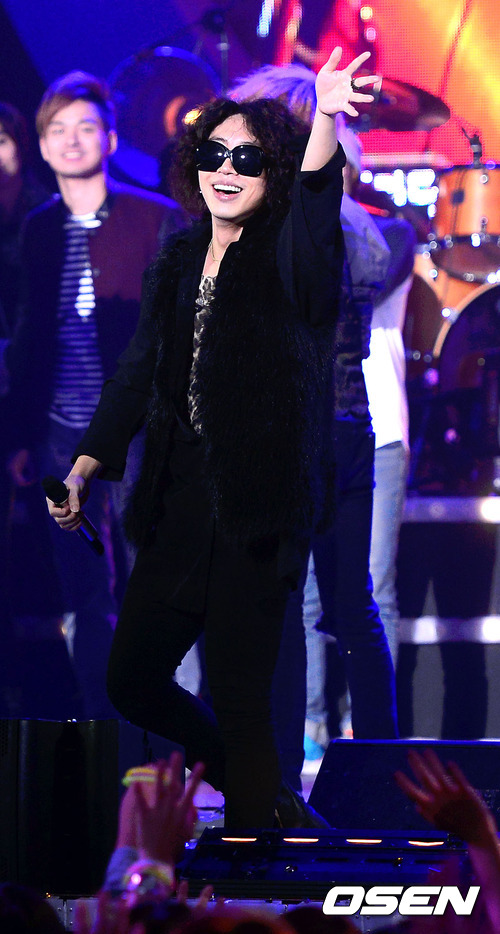 13일 오후 여의도 KBS 별관에서 진행된 KBS 2TV '밴드 서바이벌 탑밴드2'(이하 '탑밴드2') 결승전에서 로맨틱펀치 인혁이 팬들에게 감사의 인사를 하고 있다.