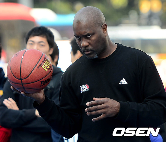 14일 오전 서울 시청 앞 광장에서 열린 '2012 NBA 3X Korea 길거리 농구대회'에서 게리 페이튼이 농구 클리닉 시간을 갖고 있다.