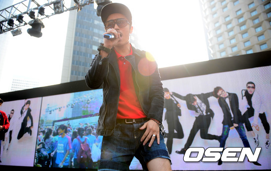 14일 오전 서울 시청 앞 광장에서 열린 '2012 NBA 3X Korea 길거리 농구대회'에서 울랄라세션 김명훈이 공연을 펼치고 있다.