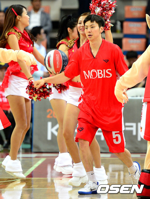 경기에 앞서 모비스 김시래가 스타팅 선수 입장을 하고 있다.