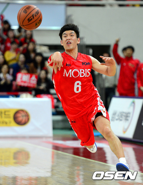 1쿼터 모비스 양동근이 동료에게 패스를 하고 있다.