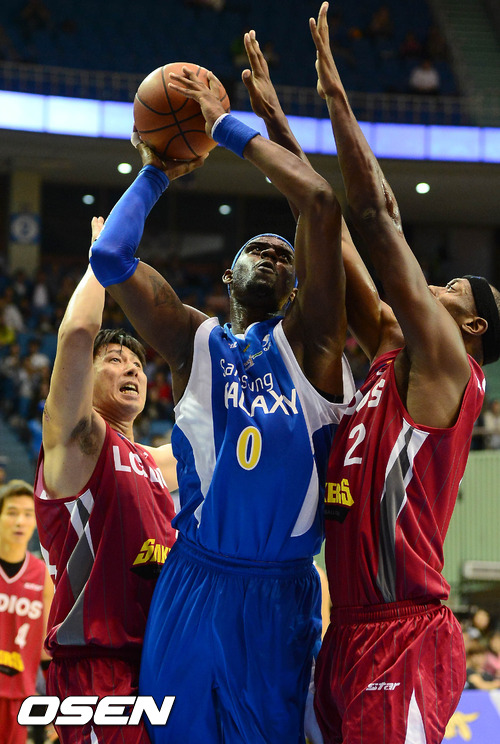 14일 오후 서울 잠실 실내체육관에서 열린 '2012-2013 KB국민카드 프로농구' 서울 삼성과 창원 LG의 경기 1쿼터 데이비스가 골밑슛을 시도하고 있다.