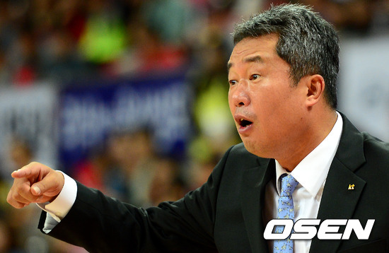 2쿼터 모비스 KT 전창진 감독이 선수들에게 작전을 지시하고 있다.