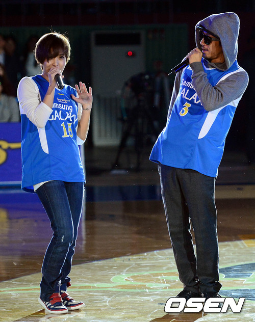 14일 오후 서울 잠실 실내체육관에서 열린 '2012-2013 KB국민카드 프로농구' 서울 삼성과 창원 LG의 경기 하프타임 타이거JK 와 윤미래가 공연을 펼치고 있다.