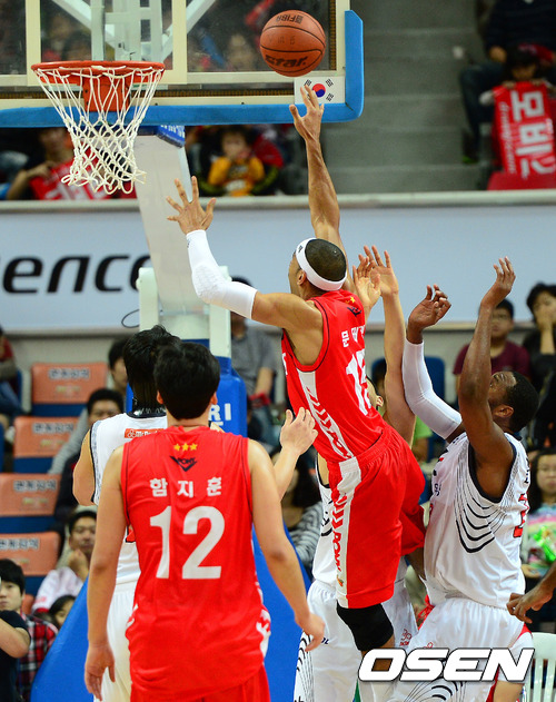 같은 날 부산 사직실내체육관에서 열린 부산 KT와 고양 오리온스의 경기는 81-74 오리온스의 원정승으로 끝났다. 올 시즌부터 KT의 유니폼을 입게 된 서장훈(16득점, 3리바운드)과 신인 장재석(10득점, 3리바운드), 조성민(15득점)이 분전했지만, 더블더블을 기록한 오리온스의 용병 리온 윌리엄스(16득점, 11리바운드)와 전태풍(18득점) 최진수(17득점)의 맹공에 버텨내지 못하고 패했다. /sunday@osen.co.kr