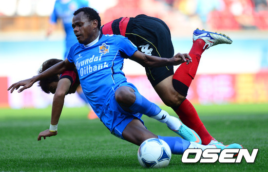 전반 울산 마라냥이 드리블을 하다 포항 김원일의 파울에 넘어지고 있다. /jpnews@osen.co.kr