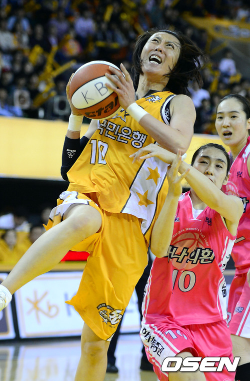 14일 오후 청주 실내체육관에서 열린 'KDB금융그룹 2012-2013 여자프로농구' KB스타즈와 하나외환의 경기, 3세트 KB 변연하가 레이업슛을 시도하고 있다.