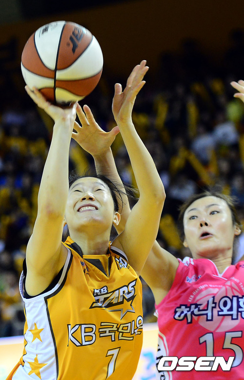 14일 오후 청주 실내체육관에서 열린 'KDB금융그룹 2012-2013 여자프로농구' KB스타즈와 하나외환의 경기, 1쿼터 KB 강아정이 골밑 슛을 시도하고 있다.