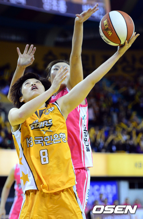 14일 오후 청주 실내체육관에서 열린 'KDB금융그룹 2012-2013 여자프로농구' KB스타즈와 하나외환의 경기, 3쿼터 KB 양선희가 골밑 슛을 시도하고 있다.