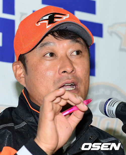 한화 이종범 코치가 질문에 답을 하고 있다.