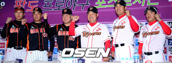 이날 미디어데이에 롯데 양승호 감독과 김사율(투수) 황재균(내야수)이, SK에서는 이만수 감독과 이호준(내야수) 정근우(내야수)가 대표선수로 참석했다.