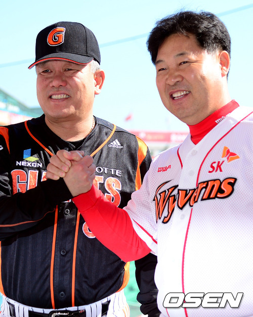 이날 미디어데이에 롯데 양승호 감독과 김사율(투수) 황재균(내야수)이, SK에서는 이만수 감독과 이호준(내야수) 정근우(내야수)가 대표선수로 참석했다.