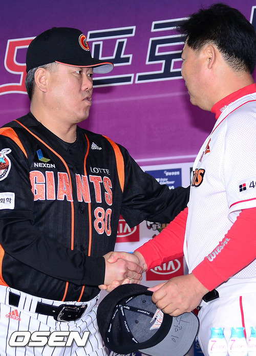 이날 미디어데이에 롯데 양승호 감독과 김사율(투수) 황재균(내야수)이, SK에서는 이만수 감독과 이호준(내야수) 정근우(내야수)가 대표선수로 참석했다.