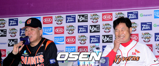 이날 미디어데이에 롯데 양승호 감독과 김사율(투수) 황재균(내야수)이, SK에서는 이만수 감독과 이호준(내야수) 정근우(내야수)가 대표선수로 참석했다.