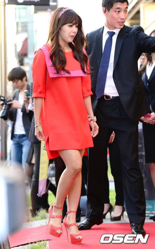 15일 오후 신사동 프론트로우 플래그쉽 스토어에서 열린 '뮤지컬 리걸리블론드와 열린옷장이 함께하는 청춘희망 캠페인'에서 에이핑크 정은지가 포토월로 입장하고 있다.